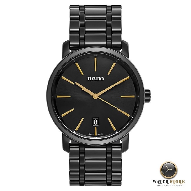 R14066152 שעון ראדו לגברים | דגם קרמיקה במחוגי זהב | שעוני יוקרה לגברים של RADO שווייץ | שנתיים אחריות | Rado Diamaster XL Black Dial Black Ceramic Bracelet Mens Watch R14066152