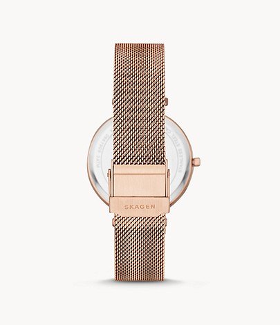 SKW2827 שעון סקאגן זהב רוז לנשים | קולקציית שעוני אופנה חדשה | שנתיים אחריות |kagen Women's Tanja Three-Hand Rose Gold-Tone Alloy Watch SKW2827