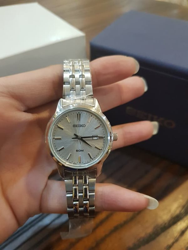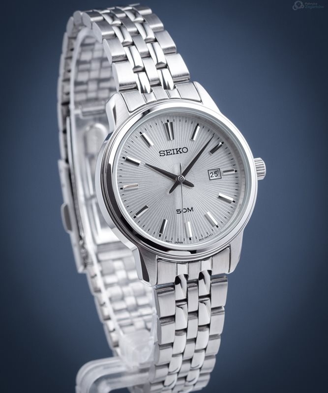 SUR667P1 שעון סייקו לאישה | שעון קלאסי ואלגנטי בלוח כסוף פסים | שנתיים אחריות | חנות שעוני אופנה לאישה | Seiko SUR667P1 Neo Classic Ladies Quartz Watch