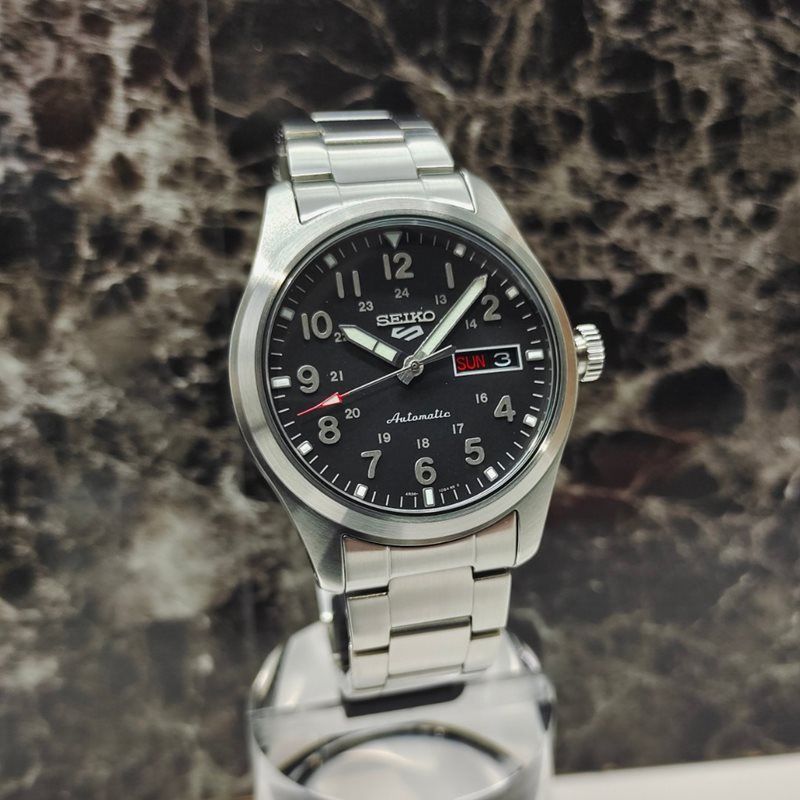 SRPG27 שעון סייקו 5 אוטומטי חדש לגברים בלוח שחור | רצועת פלדת אל חלד | שנתיים אחריות יבואן רישמי | חלון אחורי שקוף | Seiko 5 Sports Automatic Black Dial Silver-tone Steel Case
