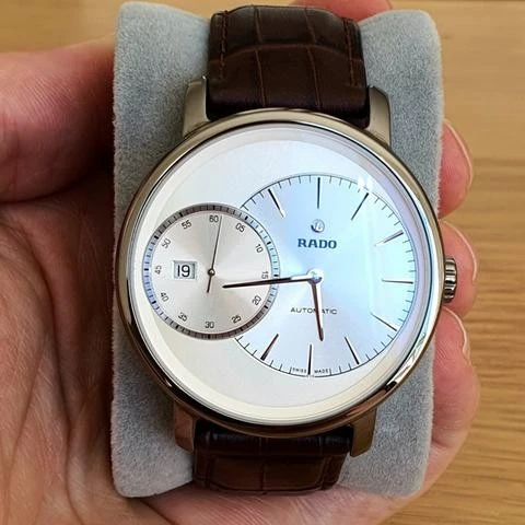 R14129106 שעון ראדו מסדרת דיאמאסטר גרנד לגברים | דגם אוטומטי קרמיברצועת עור חומה | שעון בלוח מיוחד מהדגמים החדשים | שנתיים אחריות | מלאי מוגבל | Diamaster Grande Seconde Automatic Men's Watch R1412910
