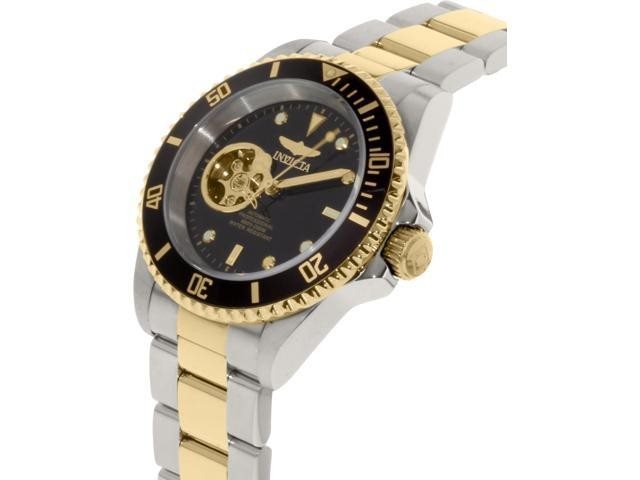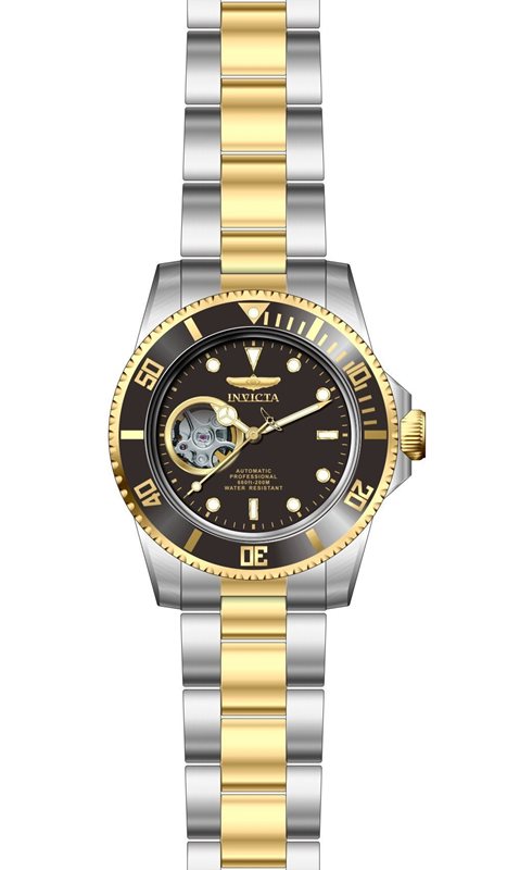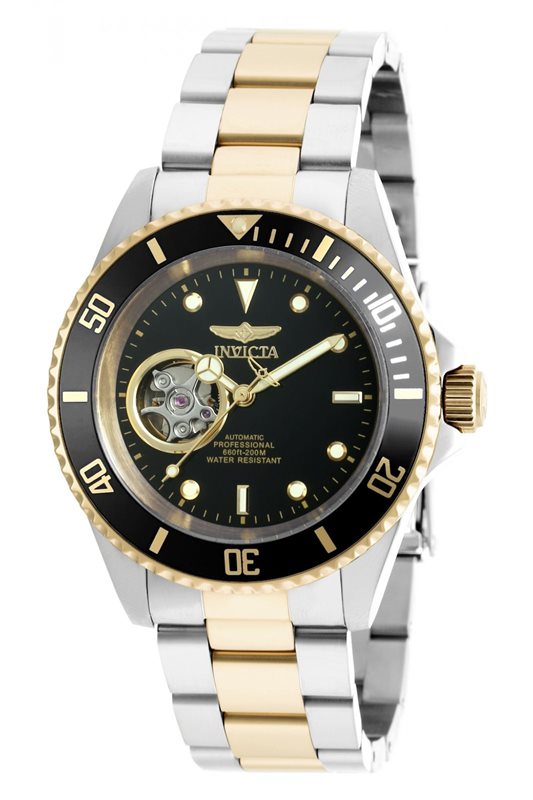 20438 שעון יד אינווקטה לגברים דגם טוטון זהב בלוח שחור סקלטון שקוף וגב שקוף |דגם אוטומטי כולל שנתיים אחריות | מלאי מוגבל | Invicta Pro Diver Automatic Black Dial Two-tone Men's Watch 20438