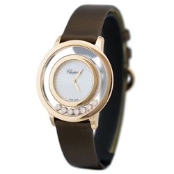 209429-5001 שעון יד יוקרתי של שופארד מסדרת הפיי | שעון זהב רוז 18K בלוח שקוף כולל 7 יהלומים מסתובבים בלוח | רצועת עור מיוחדת | שנתיים אחריות | שעוני יוקרה בראשון לציון | Happy Diamonds Icons Quartz