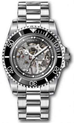 37877 שעון סקלטון של אינווקטה לגברים | באזל שחור | רצועת פלדת אל חלד מנגנון אוטומטי כולל שנתיים אחריות | מלאי מוגבל | Invicta Pro Diver Mechanical Skeleton 37877