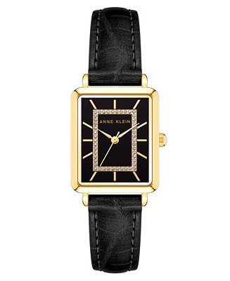 AK-3820GPBK שעון אן קליין מלבני במסגרת זהב | לוח ורצועה שחורים | שעון אלגנטי קלאסי לנשים | שנתיים אחריות | Anne Klein Glitter Accent WOMEN'S Watch AK-3820GPBK