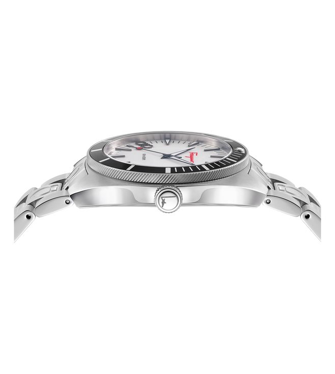 SFMG00321 שעון יד ספורטיבי אלגנטי של סבטורה פרגמו שוויץ | לוח לבן ברצועה ממותגת | מלאי מוגבל | Salvatore Ferragamo Mens White 41 mm Ferragamo Experience Watch SFMG00321