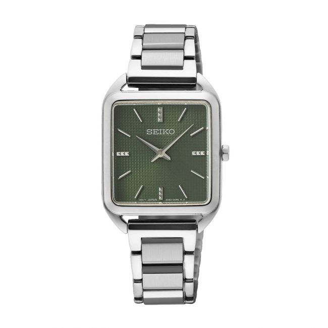 SWR075P1 שעון סייקו מלבני לאישה שעון אופנתי מהקולקצייה החדשה של 2022 | לוח יקור כהה מיוחד | שעוני אופנה לנשים בראשון לציון | Seiko Conceptual Stainless Steel Bracelet SWR075P1