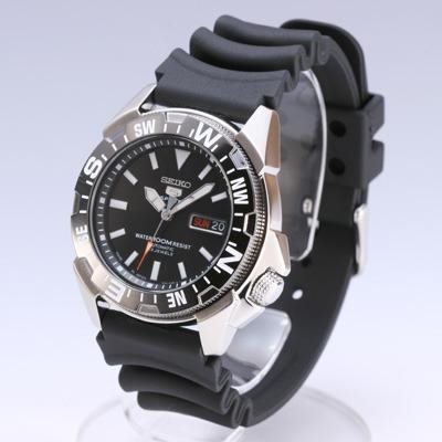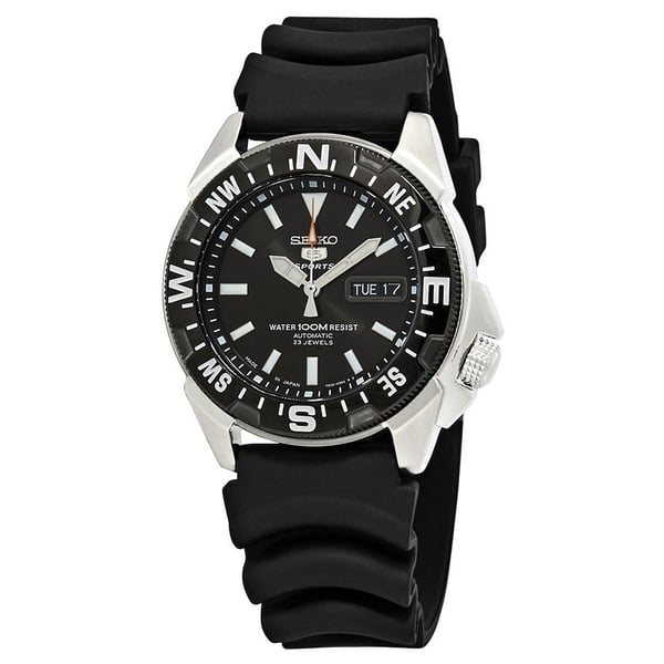SNZE81J2 סייקו 5 שעון צלילה לגברים | דגם אייקוני ברצועת סיליקון | מנגנון אוטומטי לוח אחורי שקוף | באזל מצפן מסתובב |שנתיים אחריות | Seiko Series 5 Automatic Black Dial Men's Watch SNZE81J2