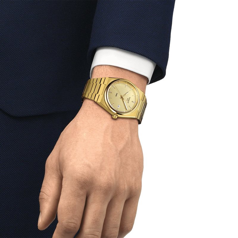 T137.410.33.021.00 שעון יד זהב לגברים למסדרת PRX החדשה | שעון אופנתי יוקרתי כולל שנתיים אחריות יבואן רישמי בישראל |Tissot Mens PRX Gold Plated Watch T1374103302100