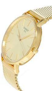 T143.410.33.021.00 שעון יד זהב טיסו קלאסי אופנתי יוקרתי לגברים | רצועת רשת מנגנון שווצרי | שעוני יוקרה במבצע | Tissot Men's T1434103302100 Everytime Gold Stainless