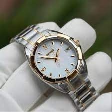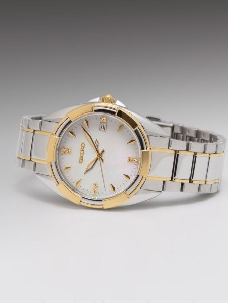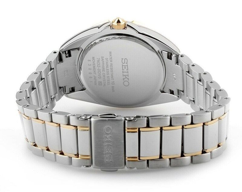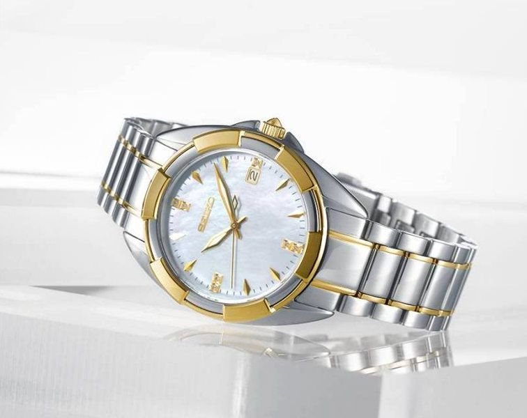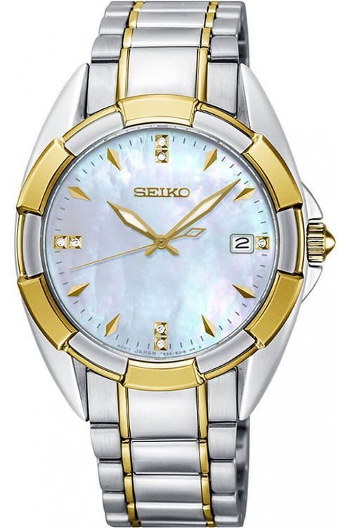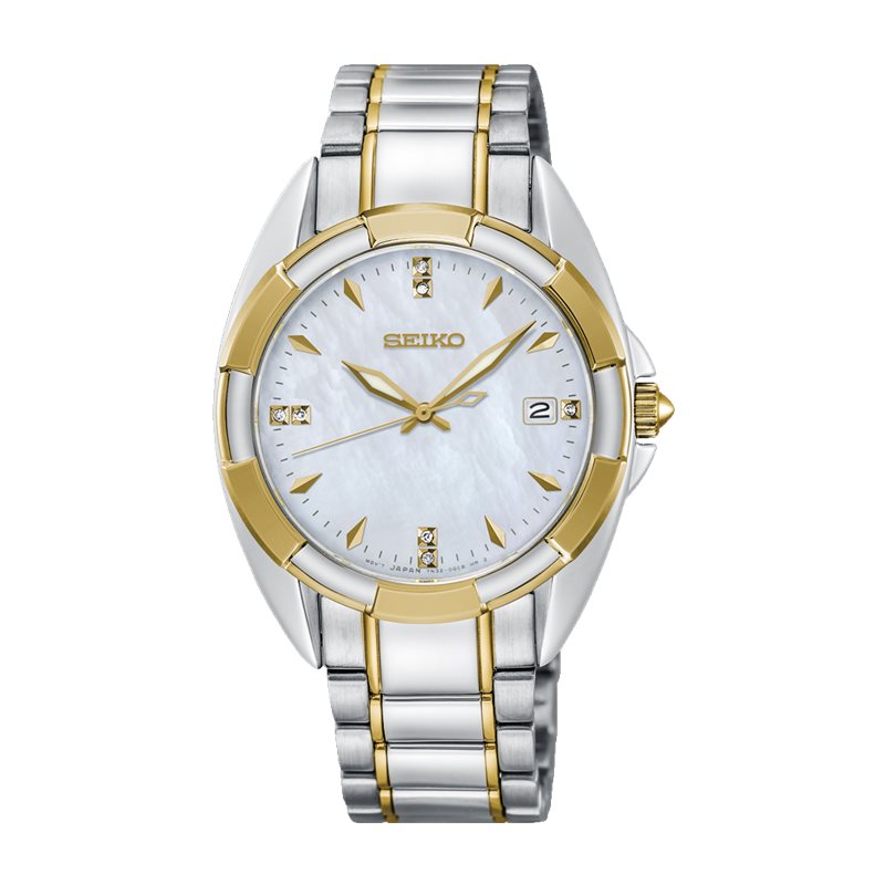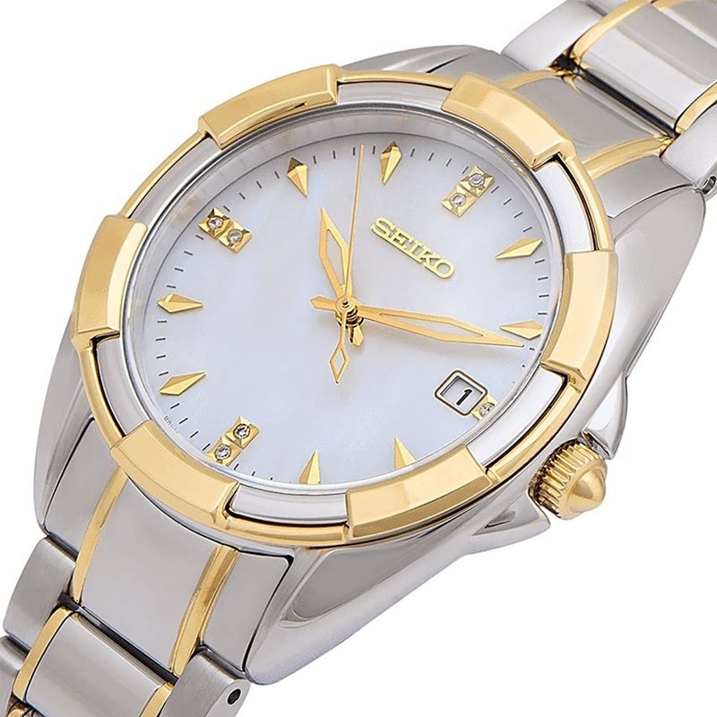 SKK886P1 שעון סייקו לאישה משובץ 7 יהלומים בלוח פנינה | דגם משולב זהב וכסף | מלאי מוגבל | שנתיים אחריות | Seiko Women's Watch Analogue Quartz Stainless Steel SKK886P1