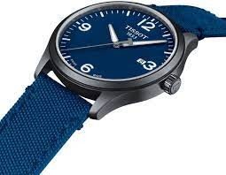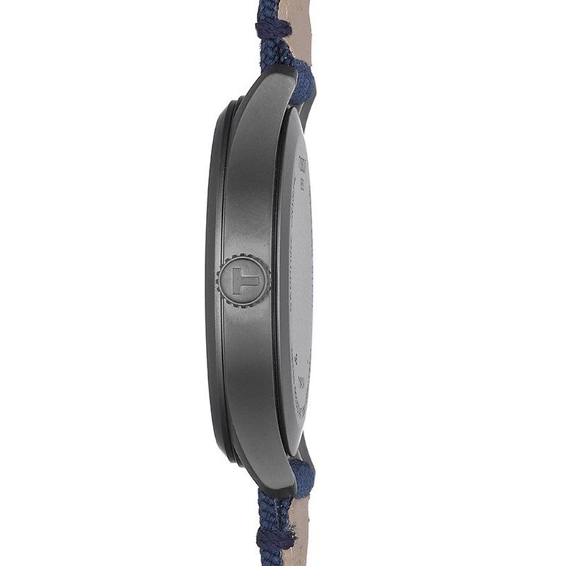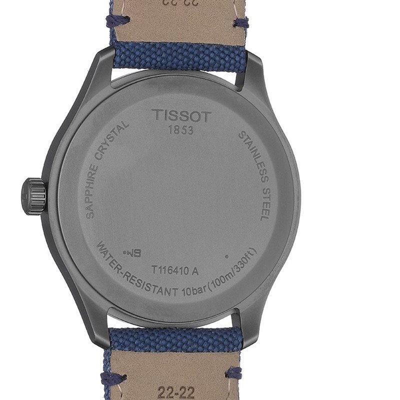 T116.410.37.047.00 שעון טיסו ספורטיבי אלגנטי לגבר | מסגרת שחורה לוח כחול ברצועת בד כחולה | שעונים שווצריים לגברים | Tissot mens Gent XL Stainless Steel Casual Watch Blue T1164103704700