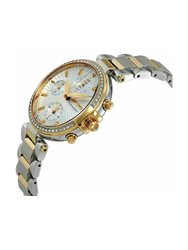 SNDV42 שעון אופנתי לאישה משובץ אבני סברובסקי | דגם גדול כרונוגרף משולב זהב וכסף | לוח יפה עם תאריכון | Seiko Chronograph Crystal Silver Dial Two-tone SNDV42P1
