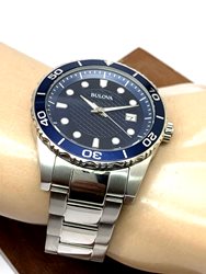 98A194 שעון בולובה בלוח כחול מיוחד | אינדקס זוהר בחשכה כולל תאריכון | שעון יוקרתי במלאי מוגבל | שנתיים אחריות | Bulova Sport Blue Dial Stainless Steel Men's Watch 98A194