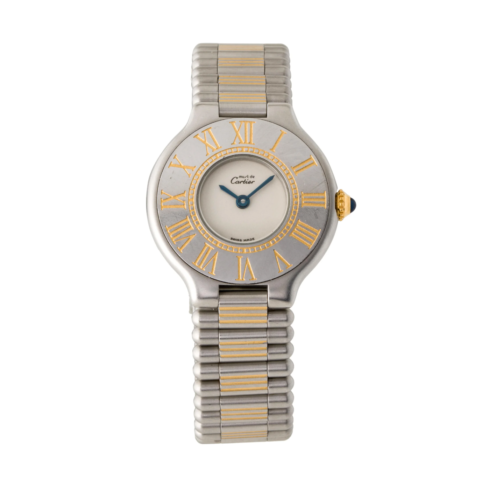 123000 שעון יש של קרטייה מסדרת מאסט יד 2 לנשים 28 מ''מ רצועה משולבת וזהב 18K | שנה אחריות |Cartier Authentic Ladies Cartier Must de Cartier 21 Steel Gold 123000P Quart