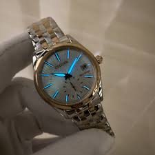 צבע לוח השעון : כסוף לבן פנינה גלים מיוחד - שעון שניות בלוח