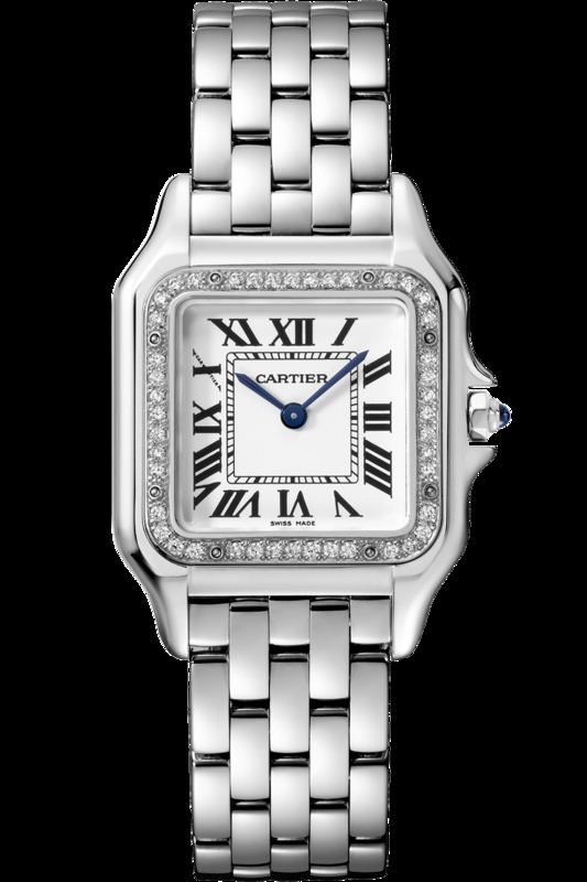 W4PN0008 שעון קרטייה פנתר מדיום משובץ יהלומים | לוח רומי לבן | 8 שנים אחריות בין לאומית | מלאי מוגבל | Cartier Panthère De Cartier Watch Medium Model, Quartz Movement, Steel, Diamonds W4PN0008