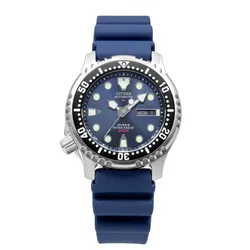 NY0040-17L שעון צלילה של סיטיזן לגברים | מנגנון אוטומטי כולל תאריכון כפול | כתר שמאלי ברצועת סיליקון כחולה | שנתיים אחריות | Citizen Promaster Sea Automatic Dive Blue Dial Watch NY0040-17L