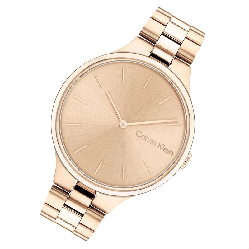 25200125 שעון אופנתי רוז גולד לאישה של קלווין קליין מהסדרה החדשה | לוח זהב אינדקס | מלאי מוגבל עם שנתיים אחריות | Calvin Klein Simplicity Women's Watch 25200125