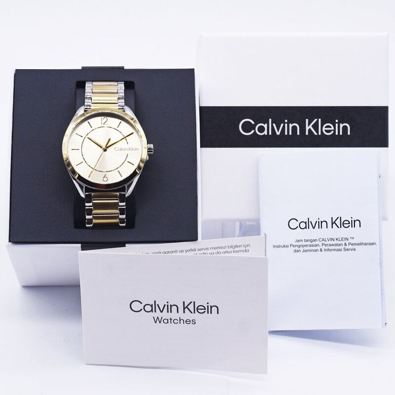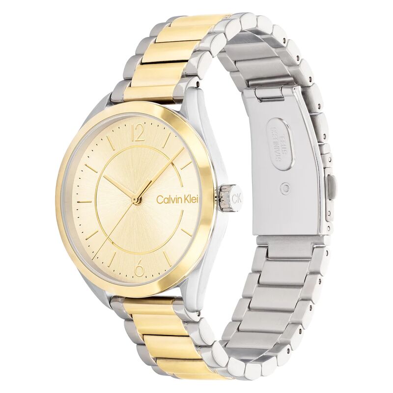 25200192 שעון קלווין קליין לנשים | דגם טוטון זהב בלוח זהב ממותג | שעוני אופנה בראשון ללציון | שנתיים אחריות | Calvin Klein Two-Tone Steel Gold Dial Women's Watch - 25200192