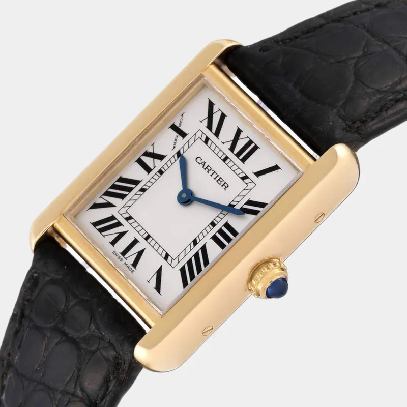 W5200002 קרטייה טנק סולו זהב מלא 18K לנשים | שעון יד 2 עם רצועת עור חדשה | שנה אחריות מגיע עם תעודות | W5200002 Cartier Tank Solo Women's 18k Yellow Gold Watch