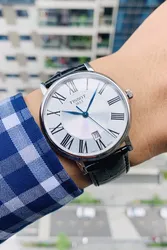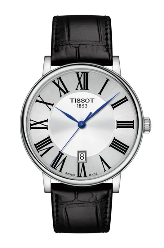 T122.410.16.033.00 שעון טיסו מושלם לגברים | דגם אלגנטי בלוח רומי כולל תאריכון ומחוגים כחולים |3 שנים אחריות | Tissot Carson Premium Quartz Black Leather 40mm Watch T1224101603300
