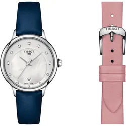 T133.210.16.116.00 שעון טיסו לנשים בלוח פנינה משובץ 12 יהלומים | מגיע כסט עם 2 רצועות עור להחלפה מהירה | שנתיים אחריות | TISSOT Odaci-T Diamonds Set T1332101611600