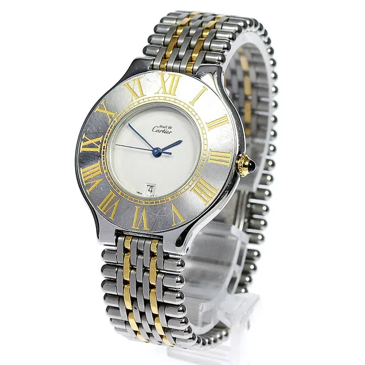 W10052F4 שעון יד קרטייה מאסט 21 טוטון יונסיקס 35 מ''מ | זהב 18K רצועה משולבת זהב | שעון יד 2 שמור מאד כולל חצי שנה אחריות | Cartier Must21 Watch Vantien LM W10052F4 Stainless Steel XL YG Swiss Made