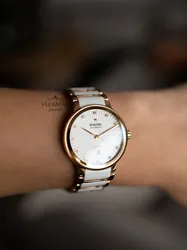 R-60373174 שעון ראדו יבואן רישמי מסדרת סנטריקס החדשה 2024 | דגם לנשים קרמי לבן משולב רוז גולד אוטומטי עם 5 שנים אחריות | Rado Centrix Jubile Automatic Women's Watch R30037744