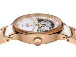 R-60293093 שעון ראדו יבואן רישמי | דגם סקלטון מסדרת סנטריקס החדשה לאישה | לוח פנינה משובץ 98 יהלומים עם מנגנון אוטומטי ו5 שנים אחריות | Rado Centrix Automatic Diamond Open Heart Skeleton R30029932