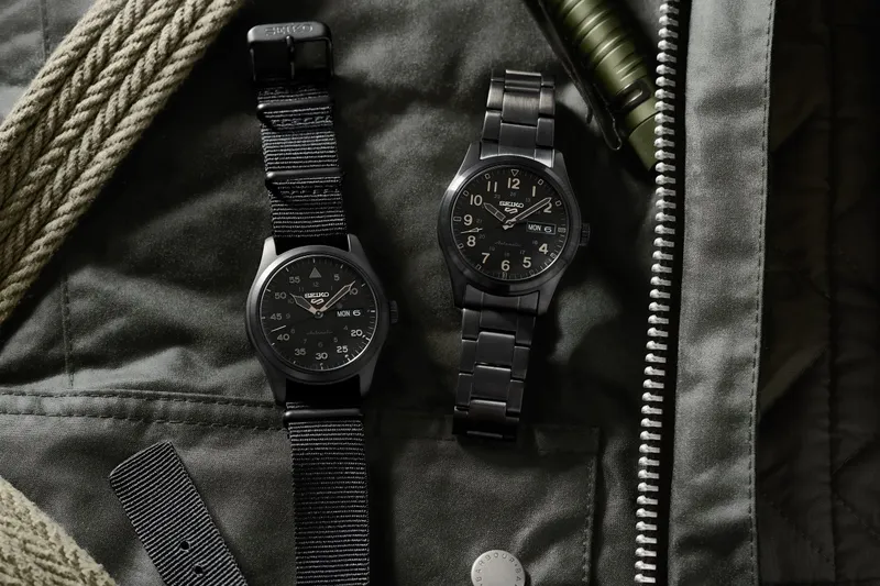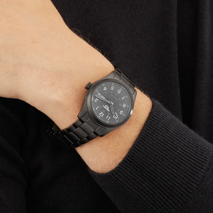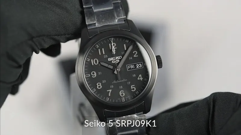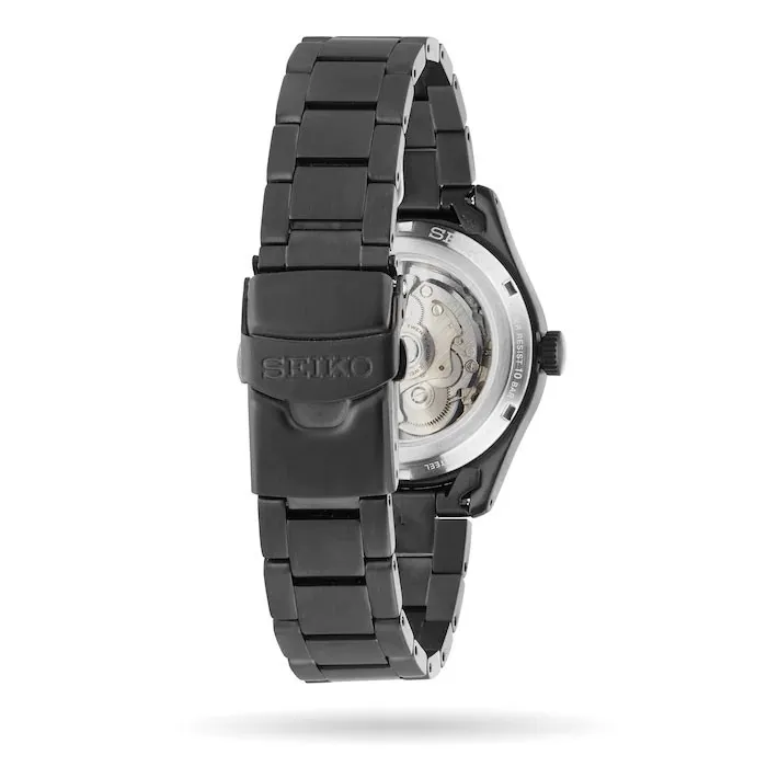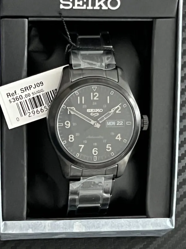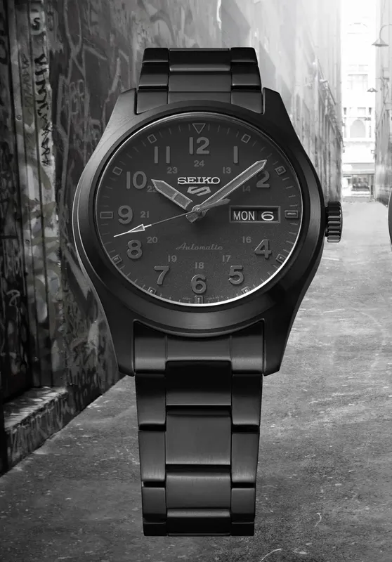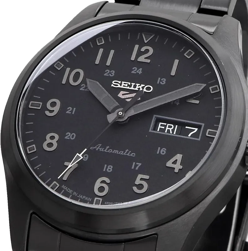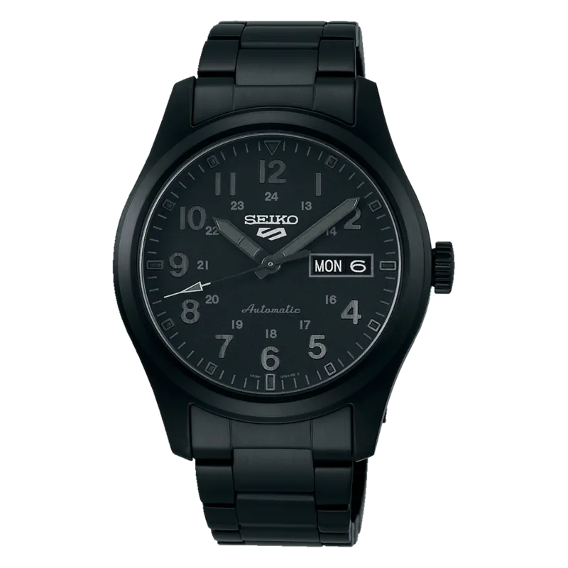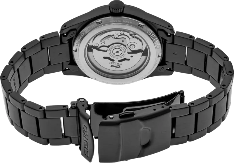 SRPJ09 שעון שחור של סייקו יבואן רשמי מסדרת סייקו 5 | מנגנון אוטומטי | לוח שחור מספרים | דגם ספורטיבי אלגנטי | Seiko 5 Sports Stealth' 39mm Mens Watch SRPJ09K1