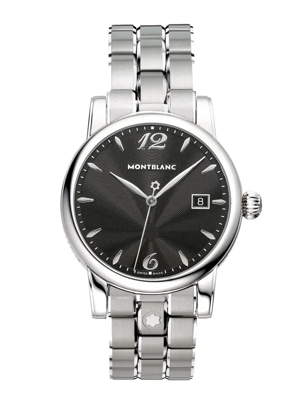 105913 שעון יד מונבלאן לגברים יד 2 סט מלא עם תעודת וקופסא | לוח שחור גלים ותאריכון | שעון יוקרתי שווצרי כולל שנה אחריות | Montblanc Star Date 105913 Quartz Black Dial Men's Watch