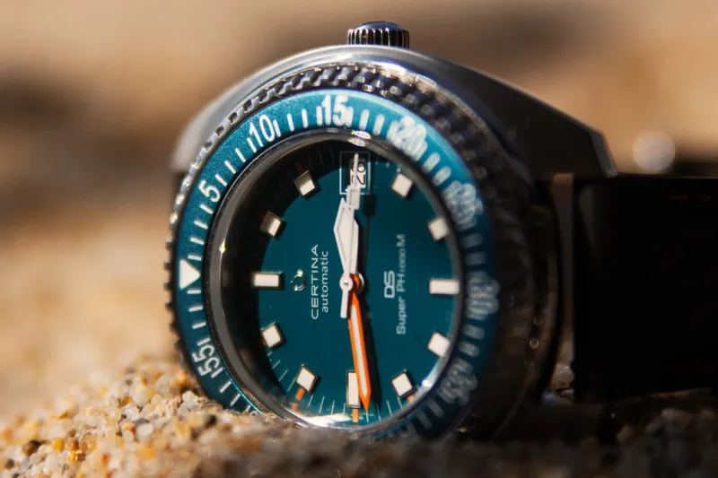 C024.907.17.041.10 שעון צלילה חדש של סרטינה לגברים | דגם בלוח כחול טורקיז זרחני עם מחוג כתום מיוחד | רצועת ספורט | לחצן הליום | 5 שנות אחריות יבואן רשמי | Certina DS Super PH1000M C0249071704110