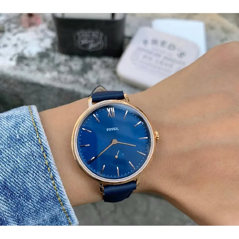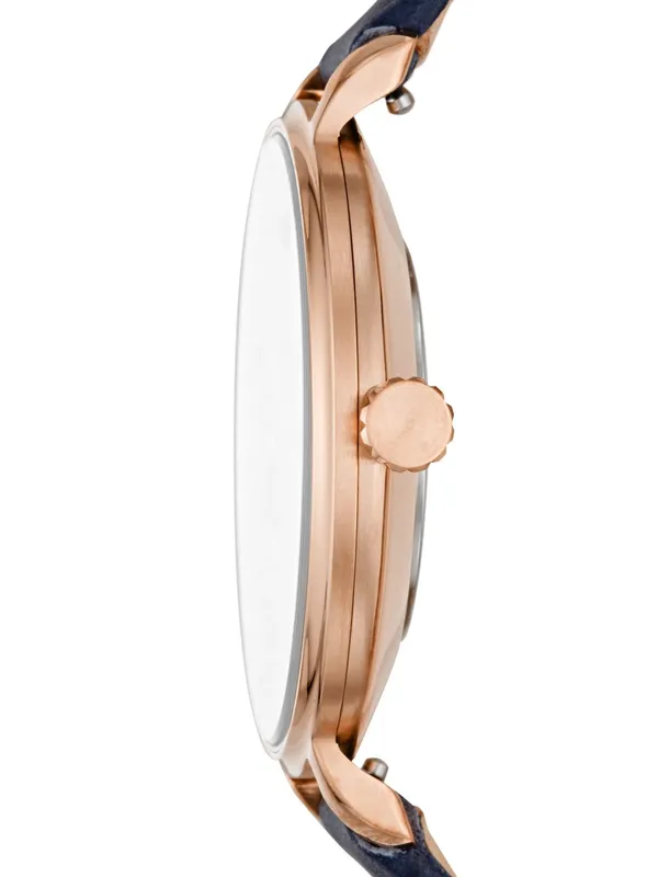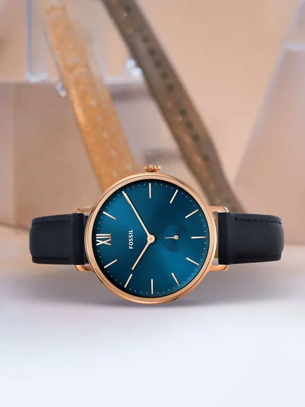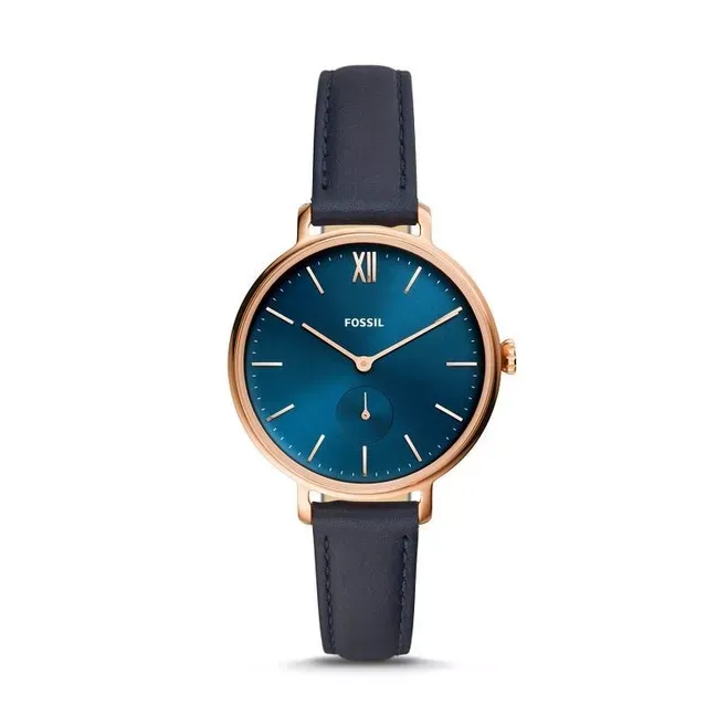 ES4663 שעון יד פוסיל דגם אלגנטי לנשים | שעון רוז גולד ברצועת עור כחולה עם שעון שניות בלוח | שנתיים אחריות | Fossil Kayla Quartz Blue Dial Ladies Watch ES4663