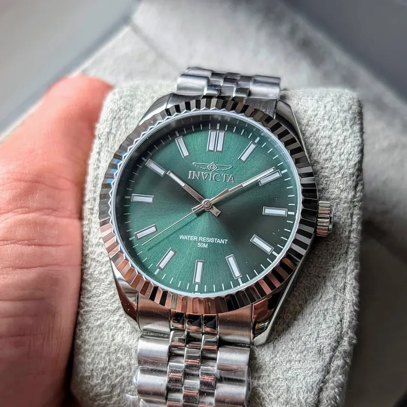 47480 שעון יד אינוויקטה לגברים | דגם בלוח ירוק | רצועת פלדת אל חלד | שנתיים אחריות | The Invicta 47480 has a 43 millimeter stainless steel case with a green dial