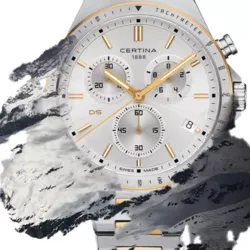 C043.417.22.031.00 שעון סרטינה די אס 7 חדש כרונוגרף | דגם משולב זהב בלוח כסוף | 5 שנים אחריות | Certina DS-7 Chronograph 41mm Silver Dial Two-Tone Steel Bracelet C0434172203100