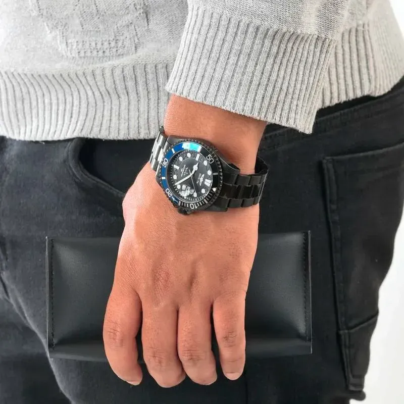 44713 שעון אינווקטה שחור לגבר | לוח שחור גלים מיוחד | באזל כחול שחור ספורטיבי | מנגנון יפני כולל שנתיים אחריות | Invicta Pro Diver 44713 Men's Quartz Watch - 43mm