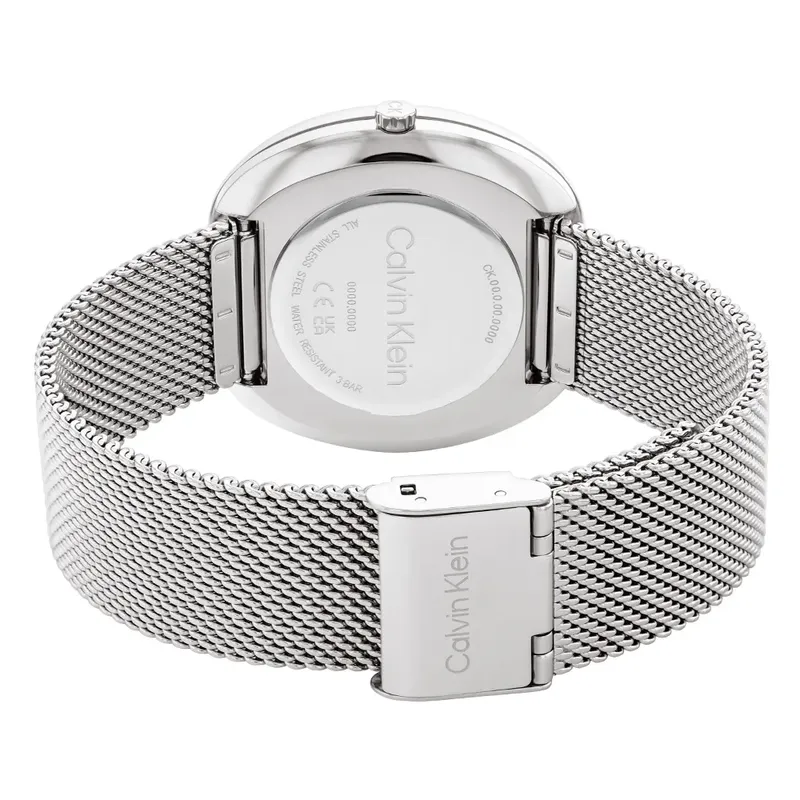 25200245 שעון אופנתי לנשים בלוח גלים מיוחד של קלווין קליין | דגם ברצועת רשת כולל שנתיים אחריות | Calvin Klein Silver-tone Steel Mesh White Dial Women's 25200245