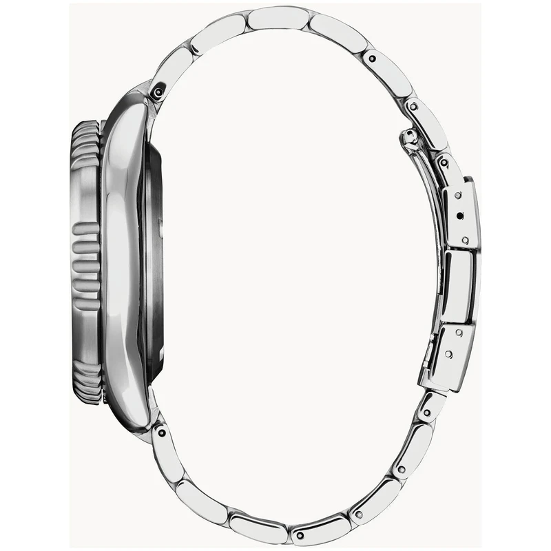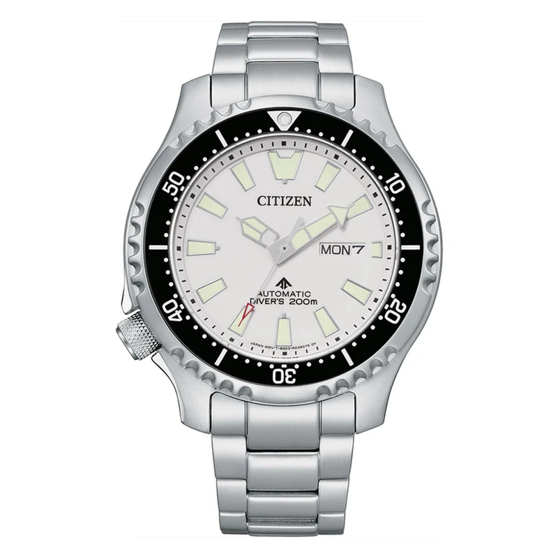 NY0150-51A שעון סיטיזן פרומאסטר אוטומטי לגברים | דגם צלילה כתר שמאלי כולל מארז מיוחד | לוח לבן זרחני | שנתיים אחריות | Citizen Mens Promaster Automatic White Dial Diver Watch NY0150-51A
