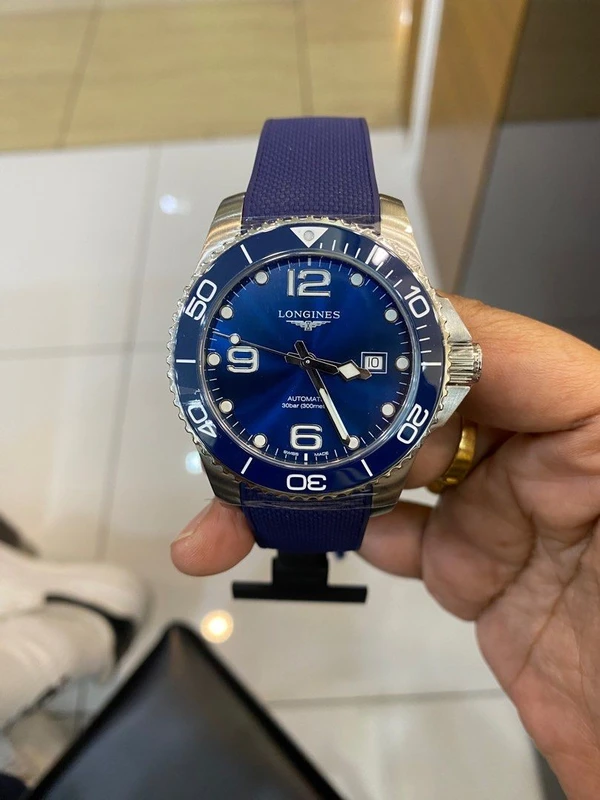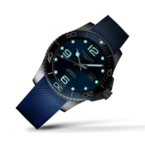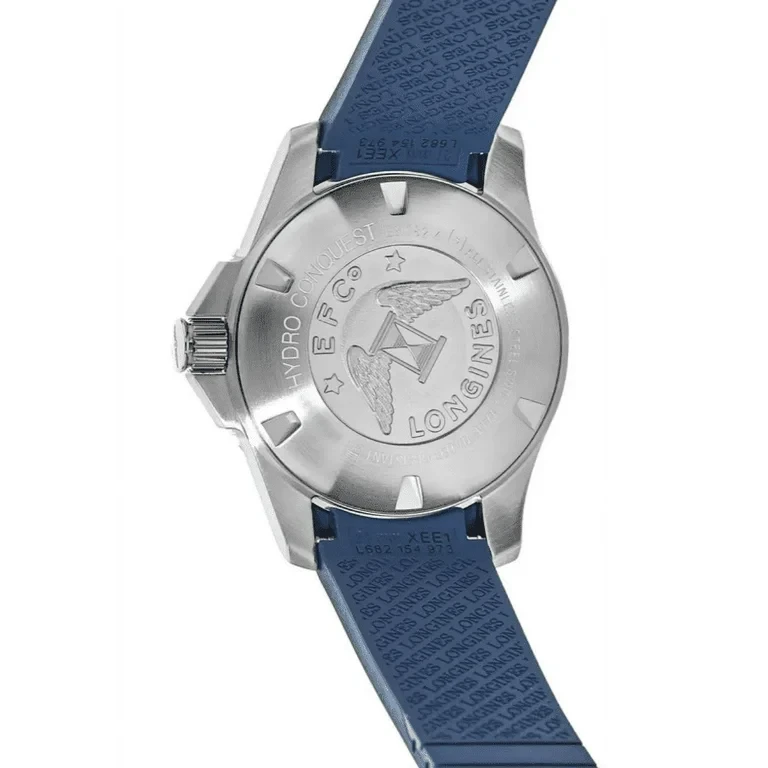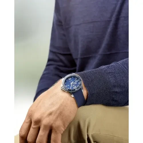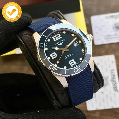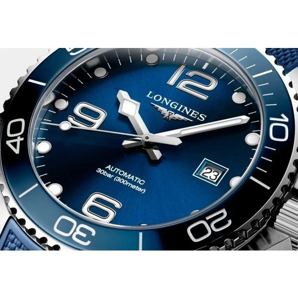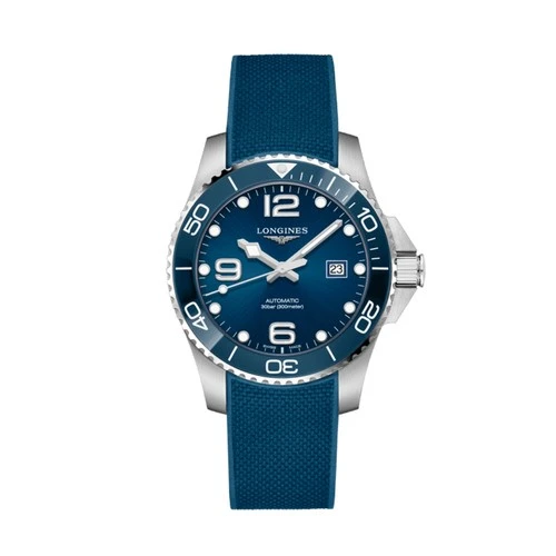 L37824969 שעון יד לונג'ן יד 2 לגברים | שעון כמו חדש כולל תעודת וקופסא | באזל קרמי עם רצועת סיליקון כחולה | 43 ממ אוטומטי | 300 מטר | Longines HydroConquest Automatic Blue Dial Watch L37824969