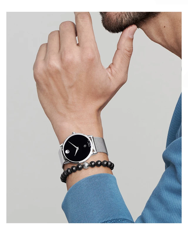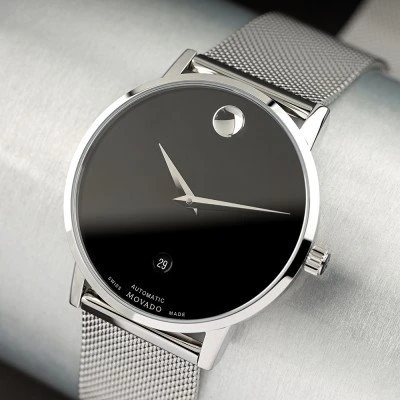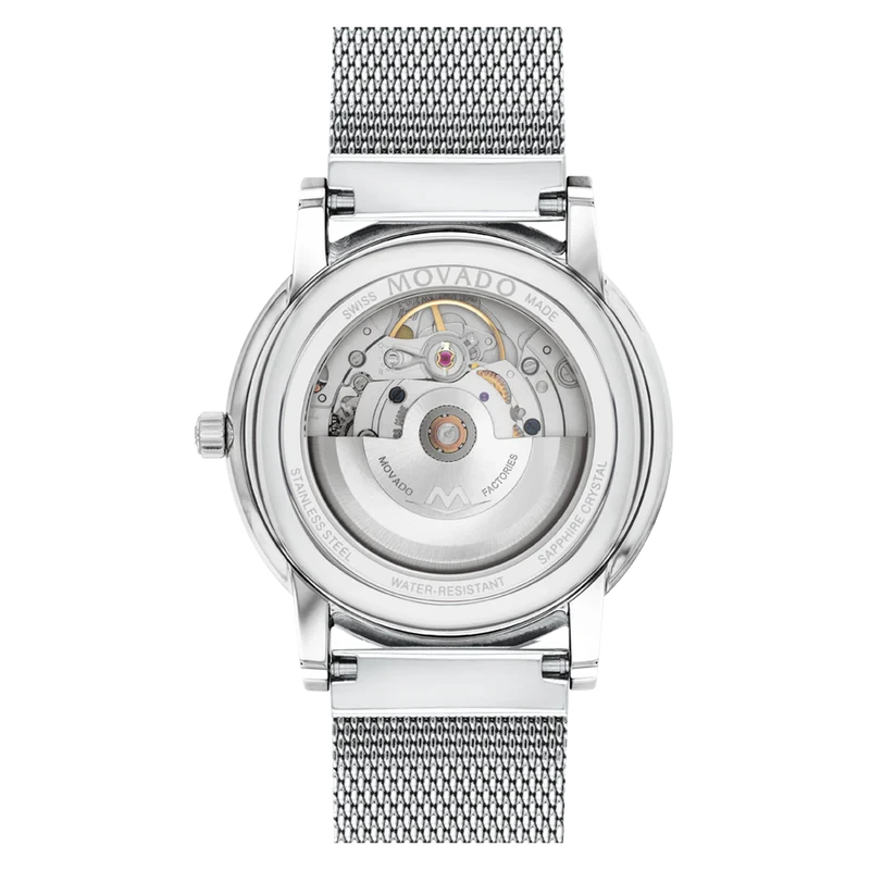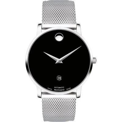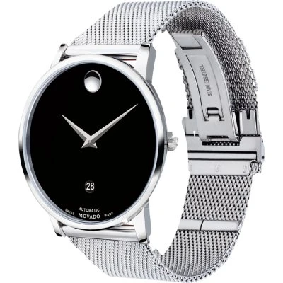 0607567 שעון אוטומטי של מובאדו לגברים | דגם ברצועת רשת אופנתית לוח שחור עם תאריכון מלאי מוגבל כולל שנתיים אחריות יבואן רשמי | Movado Museum Classic Automatic Black Dial Men's Watch 0607567