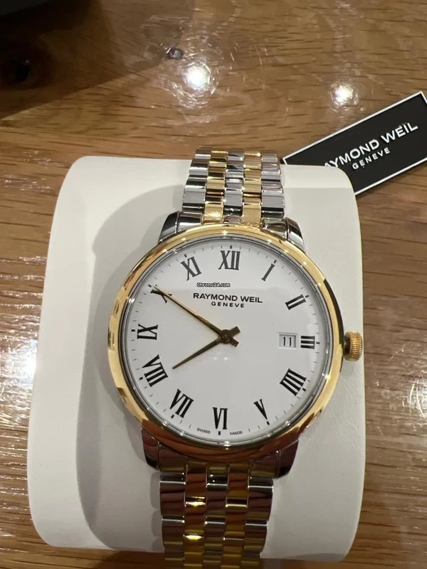 5485-STP-00300 שעון יד ריימונד ווייל לגברים | דגם טוטון בלוח לבן רומי | שעון יוקרתי שווצרי כולל שנתיים אחריות יבואן רשמי | Raymond Weil Toccata Quartz Two Tone Steel 39mm Watch 5485-STP-00300