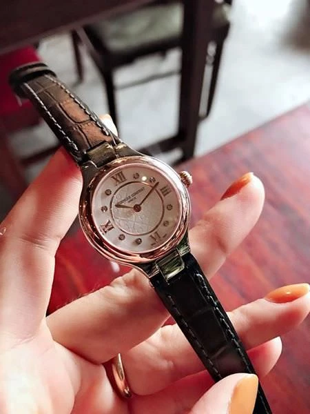 FC-200WHD1ER32 שעון יוקרתי של פרדריק קונסטנט לנשים | דגם אלגנטי משובץ 8 יהלומים | רצועת עור כולל שנתיים אחריות יבואן רשמי | Frederique Constant Delight Silver Diamond Dial FC-200WHD1ER32