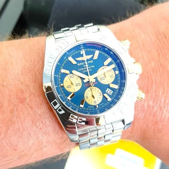 IB0110 שעון ברייטלינג כרונומט 40 מ''מ משולב זהב 18K לגברים | דגם יד 2 לאחר טיפול ופוליש | שעון כמוח חדש כולל אחריות לשנה | BREITLING CHRONOMAT 44 CHRONOGRAPH STEEL / GOLD AUTOMATIC MEN'S WATCH IB0110