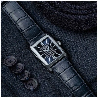FC-303N4C6 שעון מלבני של פרדריק קונסטנט לגברים | דגם אוטומטי מהסדרה החדשה | שעון אלגנטי בלוח כחול עם רצועת עור | שנתיים אחריות יבואן רשמי | Frederique Constant Men's 30mm Stainless Steel Automatic Wat