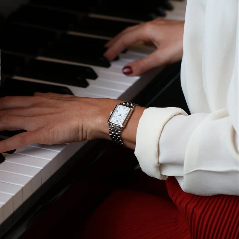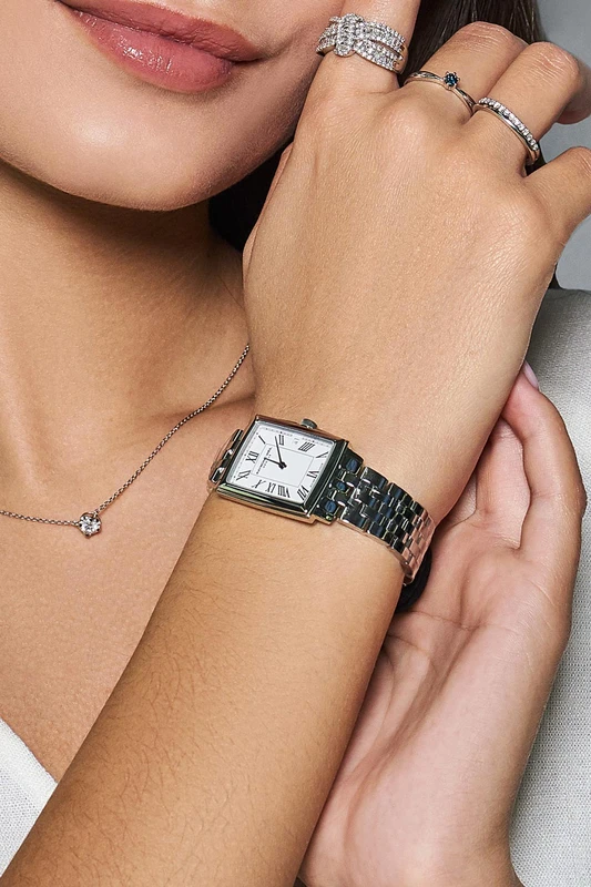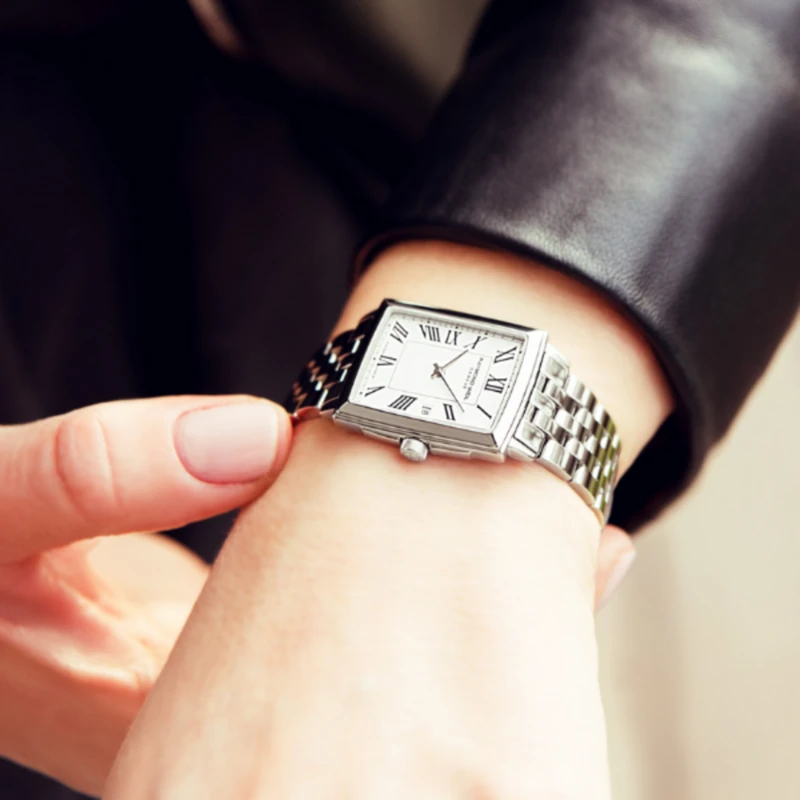 5925-ST-00300 שעון ריימונד וייל לנשים מסדרת טוקטה החדשה | שעון מלבני יוקרתי אופנתי בלוח רומי לבן | שנתיים אחריות יבואן רשמי | Raymond Weil Toccata Quartz Watch | 5925-ST-00300
