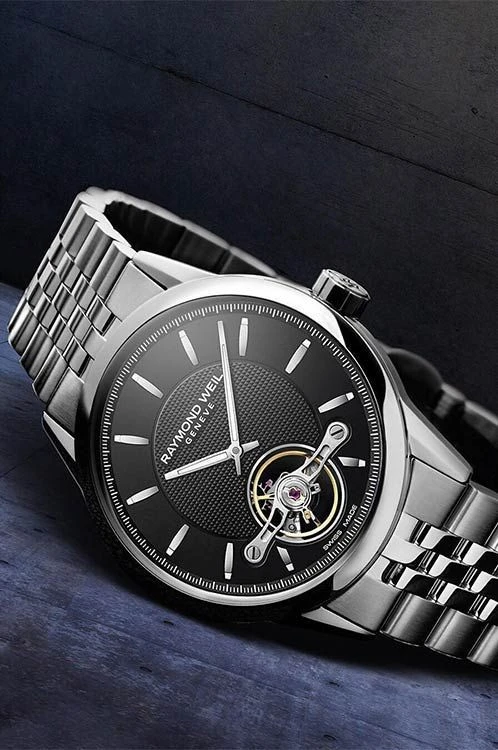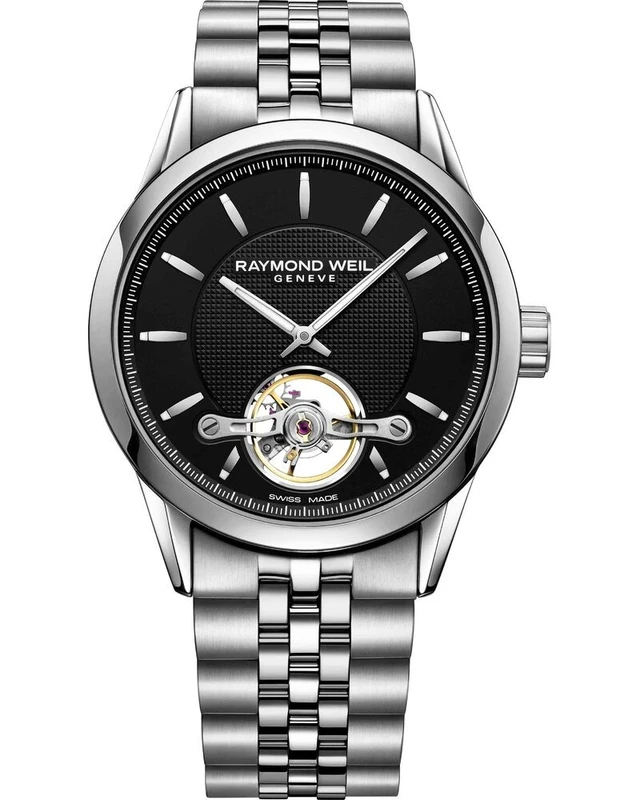 2780 ST 20001 שעון ריימונד וייל לגברים מסדרת פרילנסר היוקרתית | דגם אוטומטי בלוח שחור פתוח | שעון אלגנטי ספורטיבי כולל שנתיים אחריות יבואן רשמי | Raymond Weil Freelancer Mens Watch 2780-ST-20001