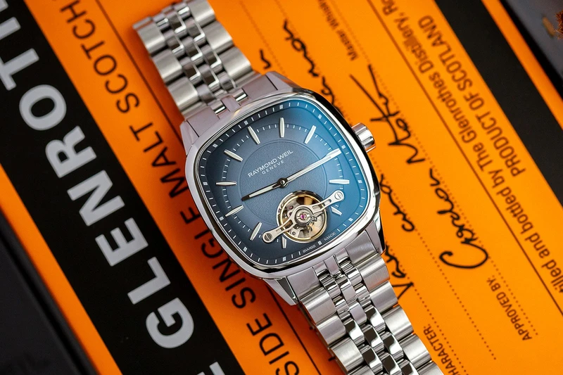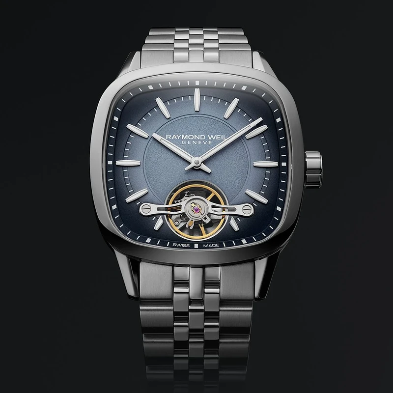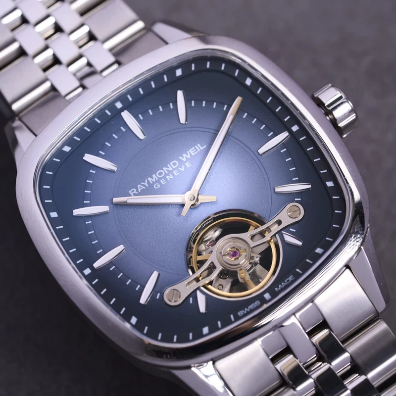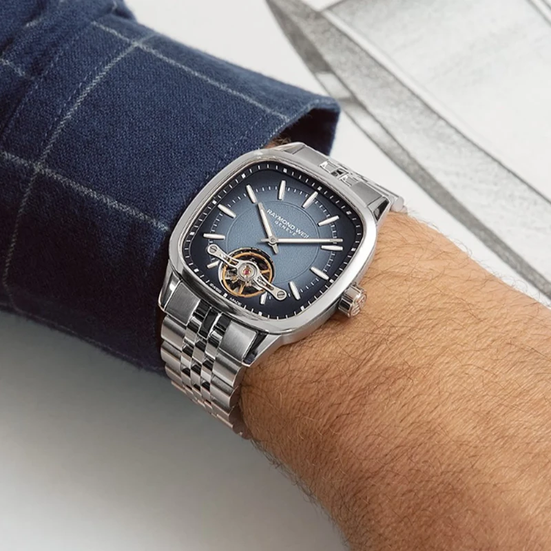 2790-ST-50051 שעון ריימונד ווייל לגברים מסדרת פרילנסר המרובעת החדשה | לוח כחול לב פתוח | אוטומטי רצועת ג'ובלי | שנתיים אחריות יבואן רשמי | Raymond Weil Freelancer Automatic Mens Watch 40mm 2790-ST-500