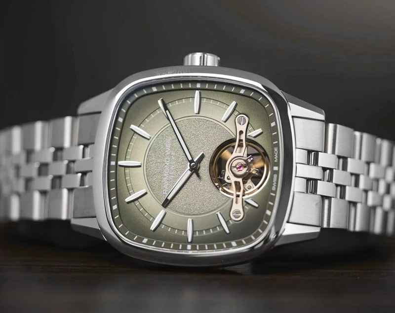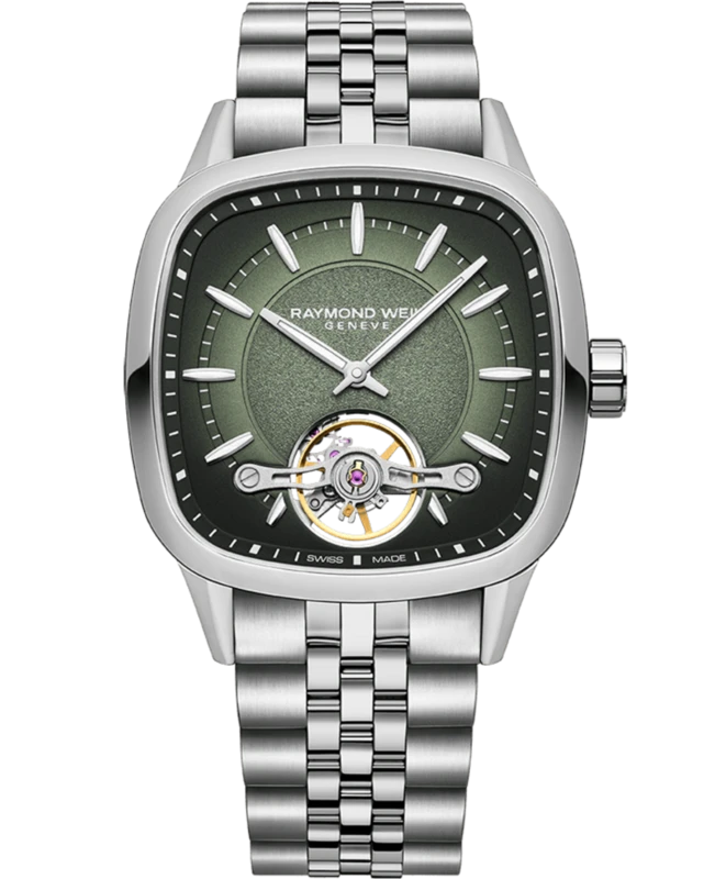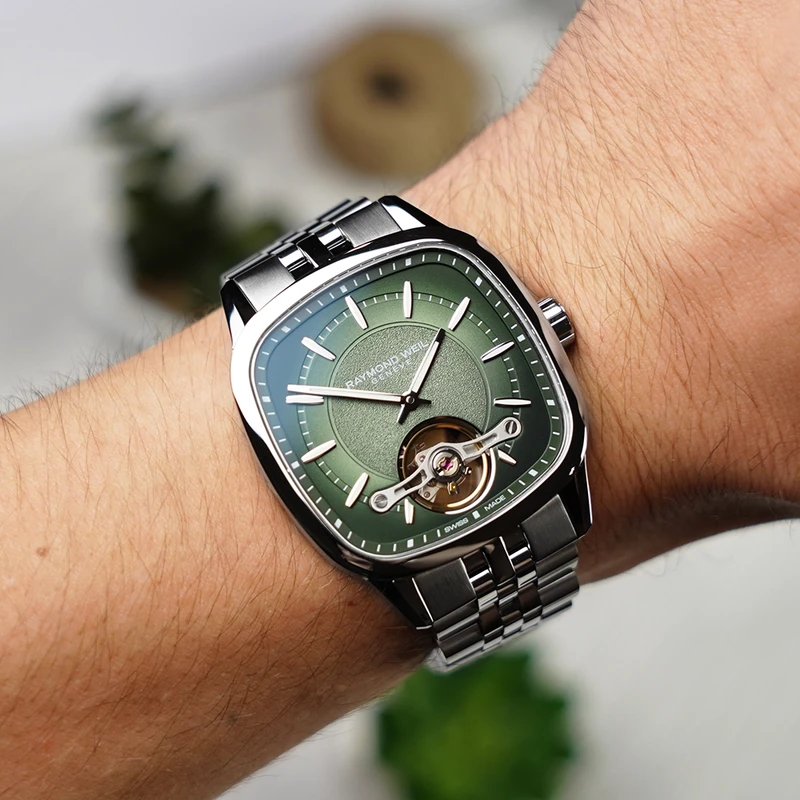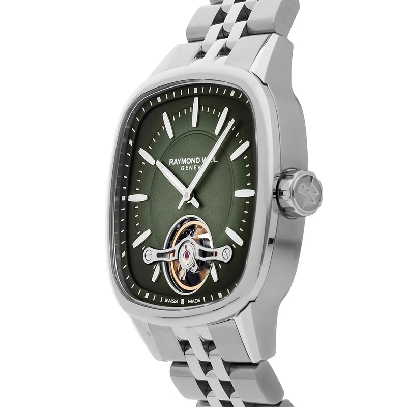 2790-ST-52051 שעון ריימונד וייל לגברים | קולקציית שעונים חדשה 2025 | שעון מרובע אוטומטי בלוח ירוק פתוח ומיוחד | שנתיים אחריות יבואן רשמי | Freelancer Automatic 40mm Men's Watch 2790-ST-52051