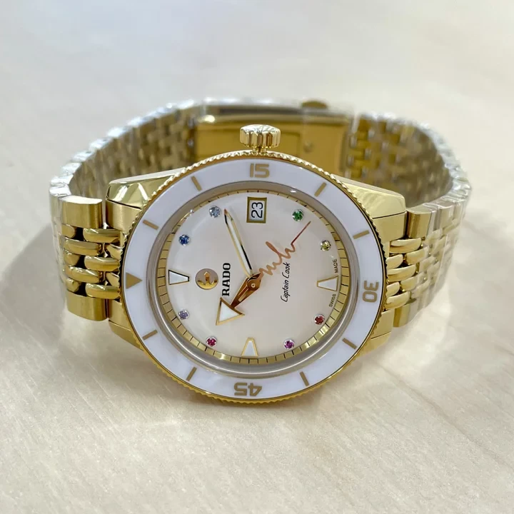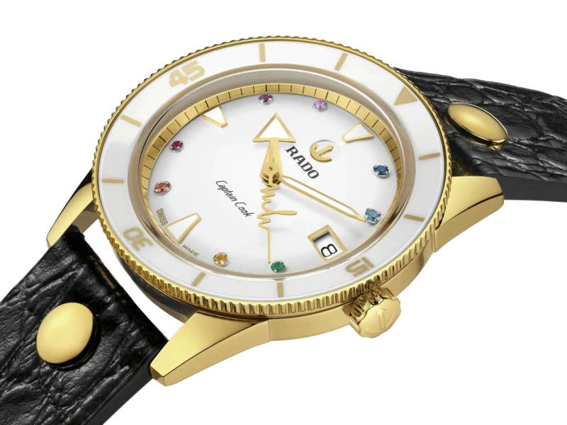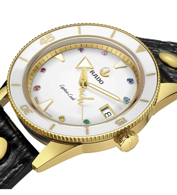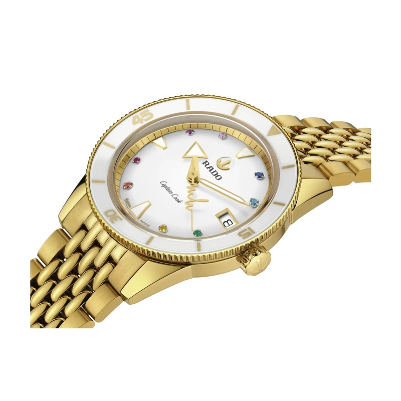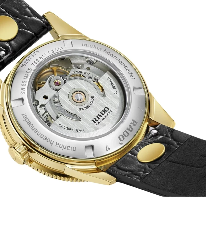 R-61173570 שעון ראדו יבואן רשמי מסדרת קפטן קוק לנשים | דגם במהדורה מיוחדת עם 3 רצועות מתחלפות ומנגנון אטומטי ו 5 שנות אחריות | 8 יהלומים בלוח Rado Captain Cook X Marina Hoermanseder Heartbeat R3211770